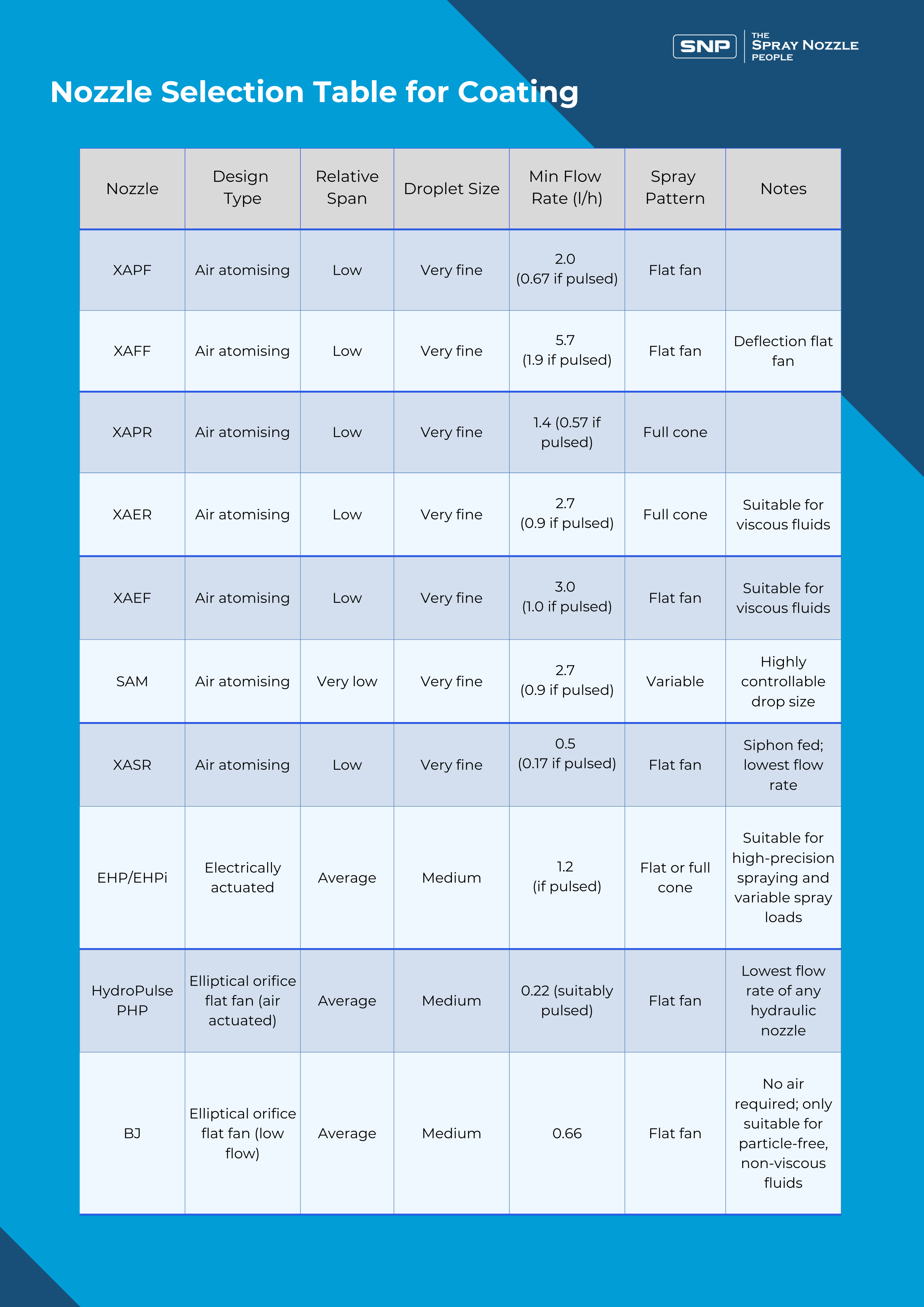 Coating Nozzle Selection Table