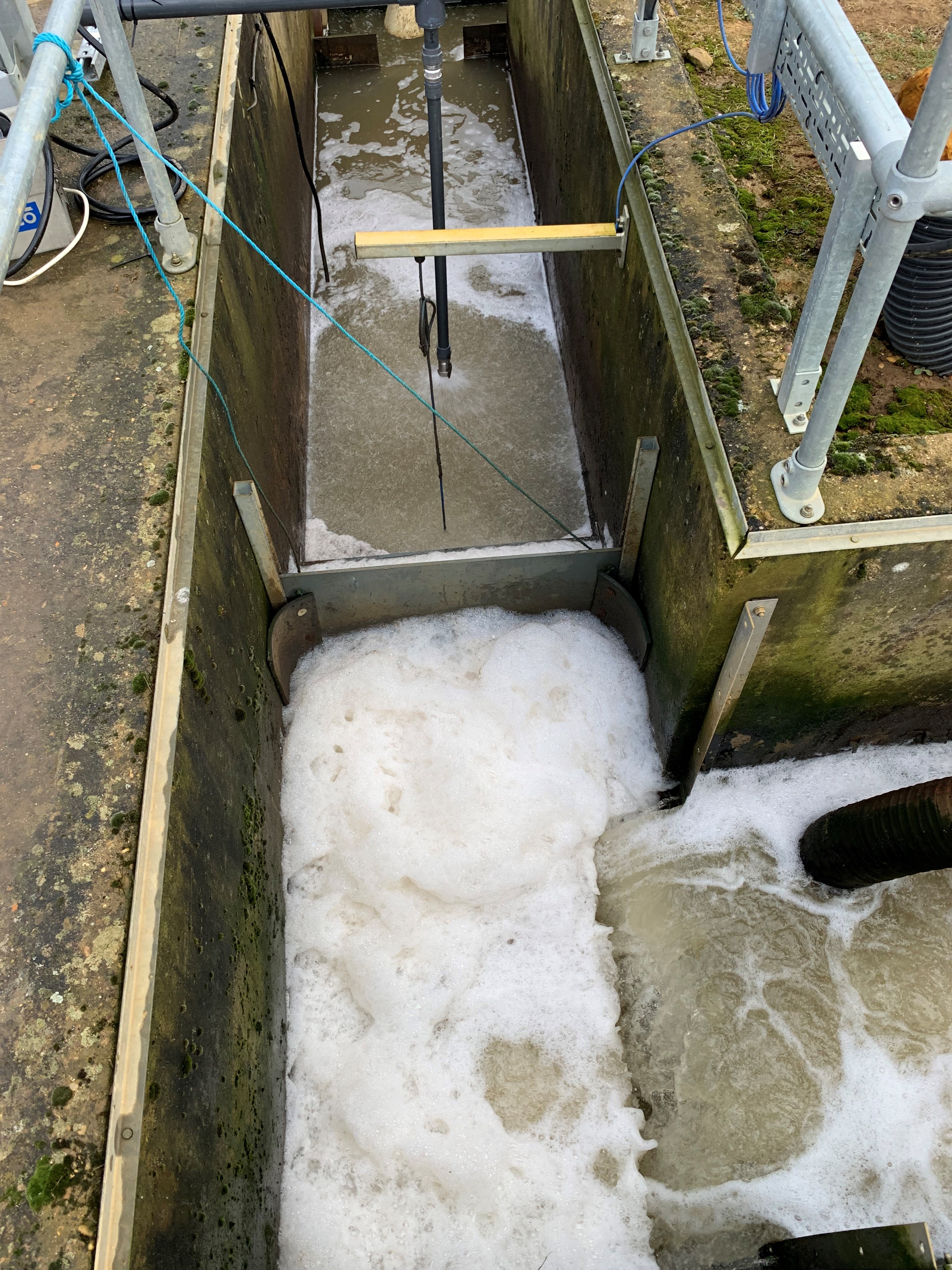 Final effluent water running through a chamber 2.4m wide, where a flowmeter level transducer was placed, was producing a considerable amount of foam.