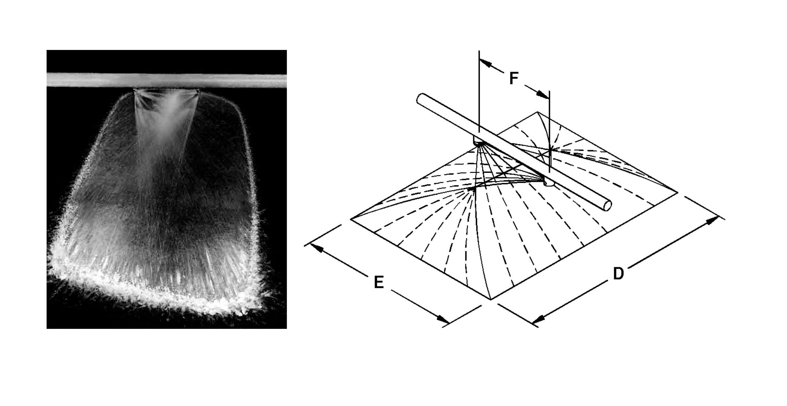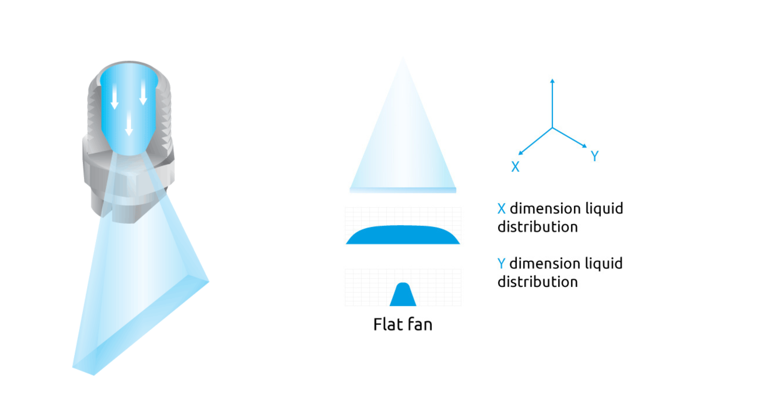 A flat fan nozzle produces a line of spray rather than a circle. And because the fluid is being concentrated into a smaller area, this spray pattern offers higher impact.