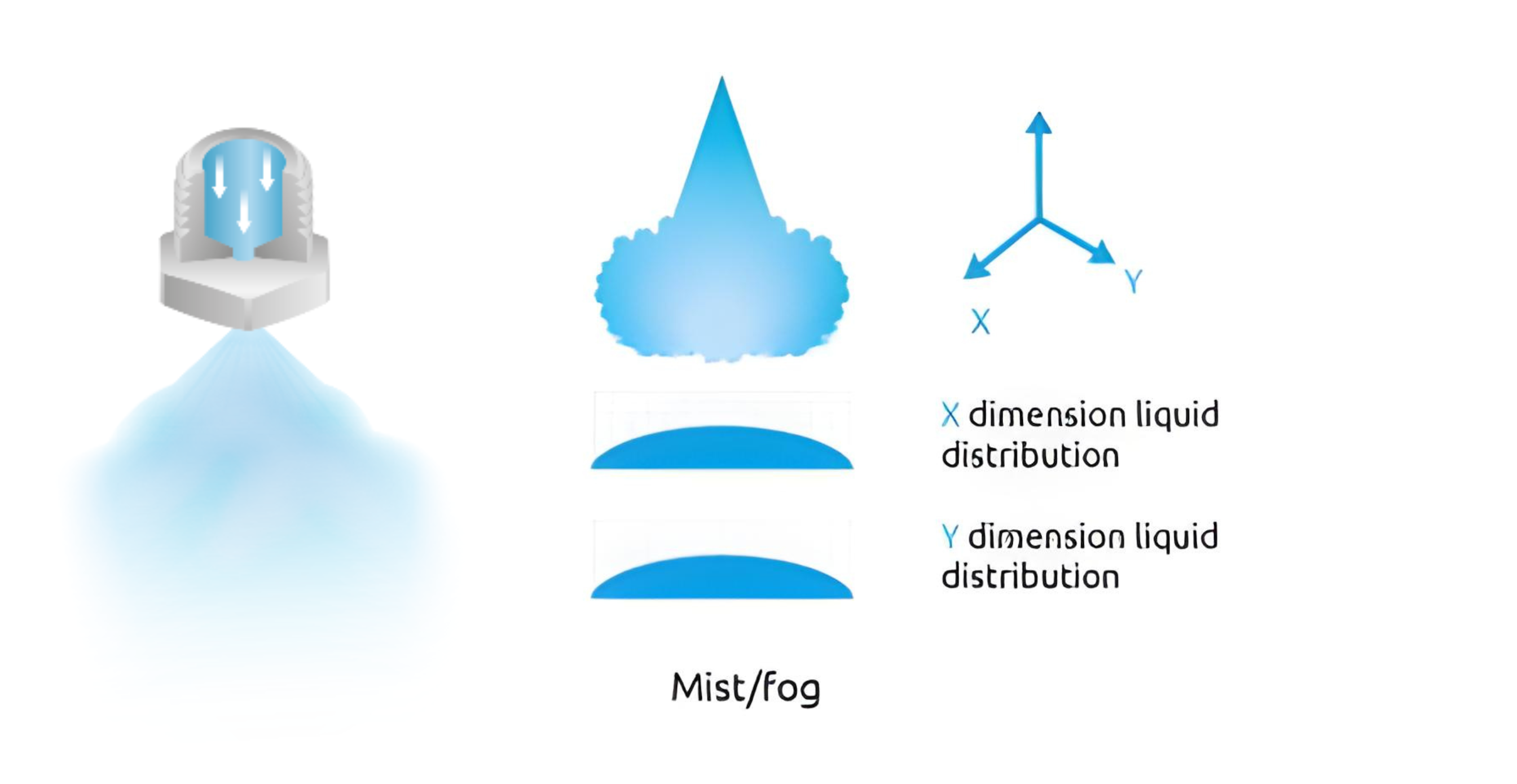 This is not a true spray pattern; misting patterns will either be a hollow cone or a full cone nozzle, typically running at higher pressures.