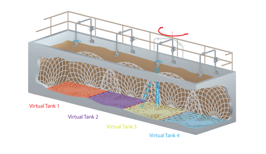 Tank size plays a major role in determining how many StormBlasters are required. Larger tanks may need multiple unitsto achieve full coverage. To design the system for these cases, the tank is divided into conceptual “virtual tanks”. Each StormBlaster™ is responsible for cleaning one virtual tank. These divisions are not physical barriers but design guidelines that ensure every area is covered.