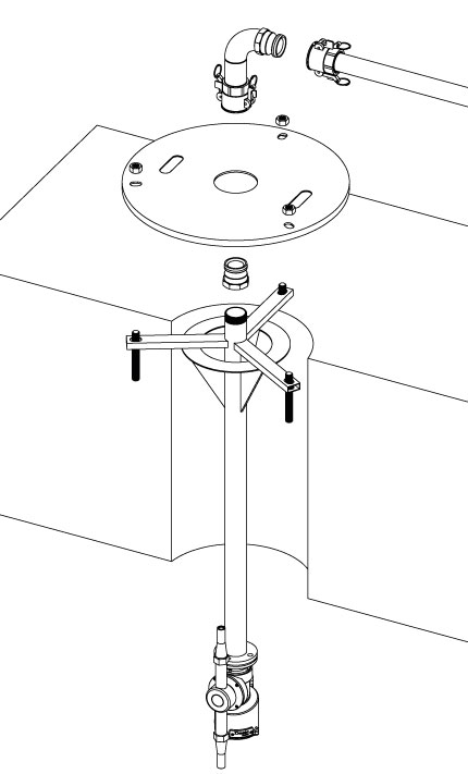 Roofed tanks are generally easier to work with because the StormBlaster™ can be mounted through a downpipe in the roof. This allows the unit to be lifted out through a manhole for maintenance. In these setups, the StormBlaster™ is usually positioned centrally, providing optimal coverage and cleaning efficiency. The position is flexible and can be adjusted to achieve the best results.