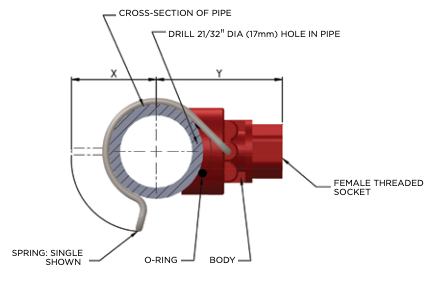 The Mark 3 assembly threads into the pipe connection rather than using clamps.  The same adjustable angle ball socket as the Mark 1 is included ending in either an integrated plastic nozzle or a female threaded socket to accept a nozzle of your choice.